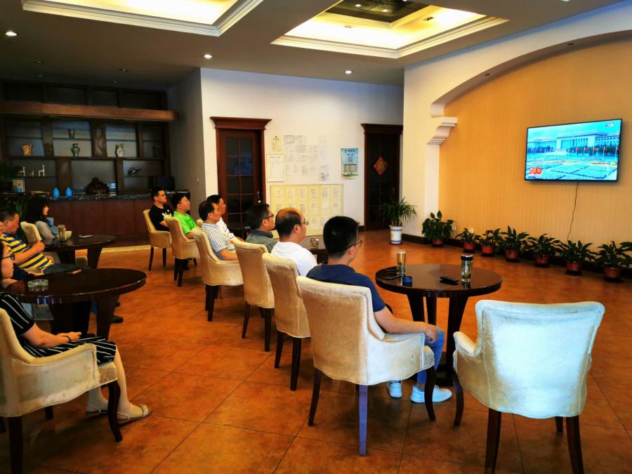 7月1日上午8时,,,,庆祝中国共产党建设100周年大会在北京天安门广场盛大举行。。中共中央总书记、国家主席、中央军委主席习近平揭晓主要讲话。。公司全体党员在9楼聚会室集中寓目大会直播,,,,认真聆听习近平总书记的主要讲话。。